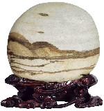 在奇石界,绝大多数石友的观念认为:奇石的价值在于状形类物、在于预示与再现,主张越具象越好。这个观念是从奇石的生成难度与稀有程度上来着眼的,的确,各地许许多多的图纹石种能够生成具象的图案巳非常难得,因此这个观念自然也就得到较为广泛的认同。
