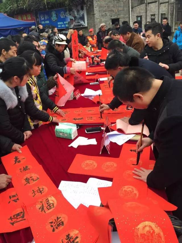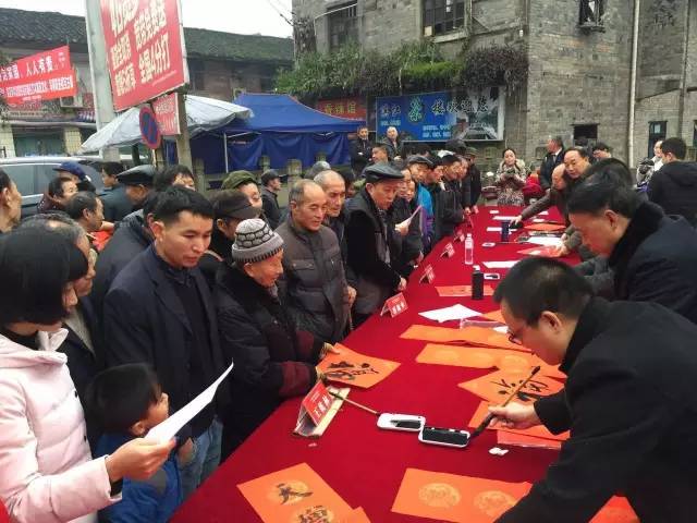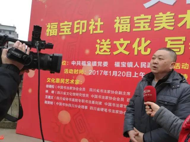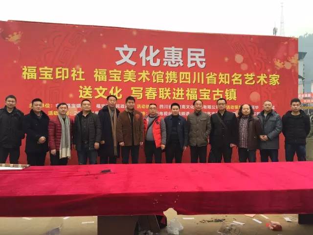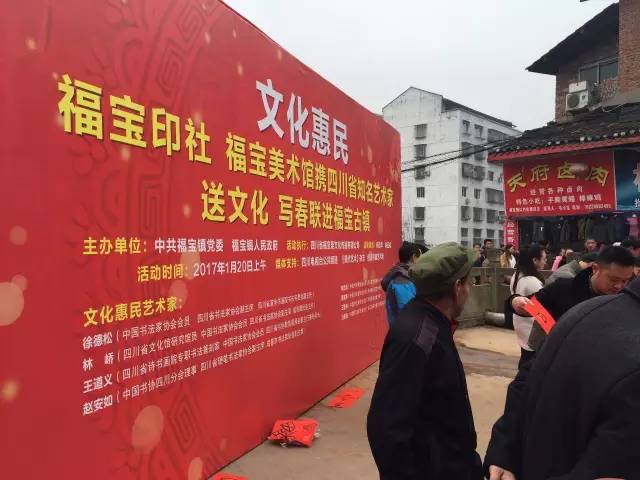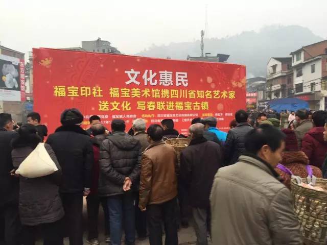 2017年1月20日上午,为回馈家乡人民的厚爱,福宝印社、福宝美术馆携四川省知名艺术家,在泸州市合江县福宝镇举办了一场文化惠民活动,为福宝镇的村民们免费写春联送祝福。