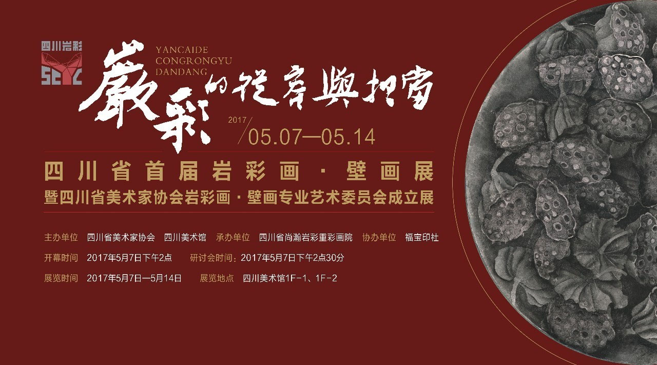 主办单位 四川省美术家协会 四川美术馆 承办单位 四川省尚瀚岩彩重彩画院 协办单位 福宝印社 开幕时间 2017年5月7日下午2点 研讨时间 2017年5月7日下午2点30分 展览时间 2017年5月7日—5月14日 展览地点 四川美术馆1F—1、1F—2 媒体支持 雅昌艺术网 四川艺术网 《现代艺术》杂志 华西都市报 成都商报 成都日报 四川电视台公共频道 四川新闻网 新浪四川 四川书画艺术网 中国美网