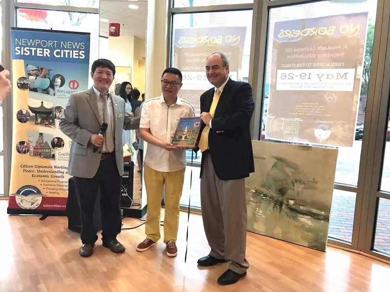主办单位:中華人民共和國國家漢辦 四川省人民政府外事侨务(港澳)办公室 美國威廉瑪麗學院 美国弗吉尼亚州纽波特纽斯市城市友好协会 四川新銳油畫院 承办单位:美國威廉瑪麗學院孔子學院 四川黑蜻蜓文化藝術有限公司 成都福寶印社 四川好农集团有限公司 美国三美艺术画廊 來雲藝術機構 香迪红馆 弗吉尼亞州 紐波特紐斯市 威廉斯堡市 CNU大學 漢普頓大學 姐妹友好城市協會 弗吉尼亞州國際藝術節組委會 策 展 人:王建軍 学术主持:黃宗賢 特邀评论:雁 西 吳永強 汪 帥 组委会主任:劉朝宇 组委会委员:王建軍 徐 甯 嚴仕能 劉穎(Ying Liu) 梁 平 Kate Helwig Katie Stodghill Shelly Simonds Stephen E. Hanson Deliang Wang ( 王德亮) Lei Ma ( 马磊) 展览地址:美国弗吉尼亚州纽波特纽斯市市中心艺术博物馆 展览时间:2017年5月19日—26日 国内媒体支持:《藝術國際網》《雅昌藝術網》《99藝術網》《新浪收藏》《搜狐藝術》《網易藝術》《騰訊文化》《成都商報》《上層》《藝術當代》《世界藝術》《新週刊》國際及美國媒體:《佛吉尼亞日報》《每日快訊》《僑報》 《中國新聞》、美國福克斯電視臺