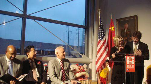 经中美双方商定,“墨非墨——中国当代水墨展”定于2009年4月1日在美国费城德雷塞尔大学艺术馆展出。由于中国文化部部长助理丁伟在今年“两会”期间举行的记者招待会上隆重介绍了这一项目,所以中美双方的相关部门及艺术界、新闻界人士都对此项目十分关注。为了使展览成功举办,美国方面做了大量的工作,不仅在费城中心区的大楼上布置了大型广告、在街道上布置了大量的宣传彩旗,还在一些新闻媒体上做了广告。 展览开幕的当天下午,在费城德雷塞尔大学报告厅举办了学术研讨会,会议由德雷塞尔大学艺术史主任Joseph Gregory博士主持,深圳美术馆艺术总监鲁虹、华南师范大学教授皮道坚、中央美术学院教授余丁、耶鲁艺术学院(Yale School of Art)学监 Robert Storr、《美国艺术》(Art In America)高级编辑 Richard Vine、亚洲艺术学会 (the Asia Society Museum)主管 Melissa Chiu先后发言,他们分别涉及了中国当代水墨发展所取得的学术成就及相关问题。与会代表计有300多人,美国艺术界与新闻界人士、中国文化部市场司司长刘玉珠、中国驻美国文化参赞、中国驻纽约领事等也出席了研讨会。会议受到与会者的高度评价,研讨会相关内容已经在德雷塞尔大学的网站上发布。 展览开幕式于当晚7时在展览的主厅开幕,共有四百多人将主厅挤得水泄不通,在舞狮活动结束后,德雷塞尔大学董事Abbie Dean与德雷塞尔大学威斯帕尔学院艺术与艺术史系主任Joseph Gregory 博士宣布展览开幕,中国驻美国公使谢峰、费城市长、中国文化部市场司司长刘玉珠与校方代表先后发言,他们都对“墨非墨——中国当代水墨展”在费城举办表示欢迎,并希望由此揭开中美交流新的篇章。在开幕仪式上,德雷塞尔校方代表还向中国文化部市场司司长刘玉珠司长赠送了礼品。在施放了五颜六色的花炮后,与会嘉宾怀着浓厚的兴趣参观了分设在四个展厅的作品。与国内展览相比,此次赴美展览增加了艺术家林天苗、邱志杰与张小涛的作品,更丰富、完整地呈现了中国当代水墨的整体创作现状。展览深为美国观众赞赏。许多人表示没有想到中国当代水墨发展得如此快、如此好,其较充分地体现了当代中国的文化价值观。 当晚九点,德雷塞尔大学在学校豪华的宴会厅举行了隆重的酒会,美国政要、艺术界人士、校方代表与中国方面的代表等出席了酒会,并就广泛的问题进行了友好交谈。此外,校方还向中国代表团成员赠送了礼物。《纽约时报》、《华人日报》等媒体都对展览进行了专版介绍。 据悉,尽管展览开幕式的门票高达75美元,但仍然有300多人参观,这充分显示了美国人民渴望了解中国当代艺术的热情。正如中国公使谢峰对中国代表团成员所说的那样,以后要努力多在美国展出类似优秀的中国当代艺术展,以加深中美双方的文化交流。