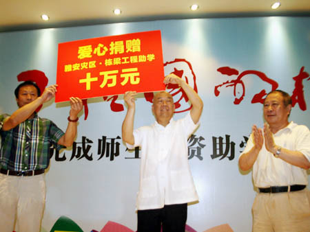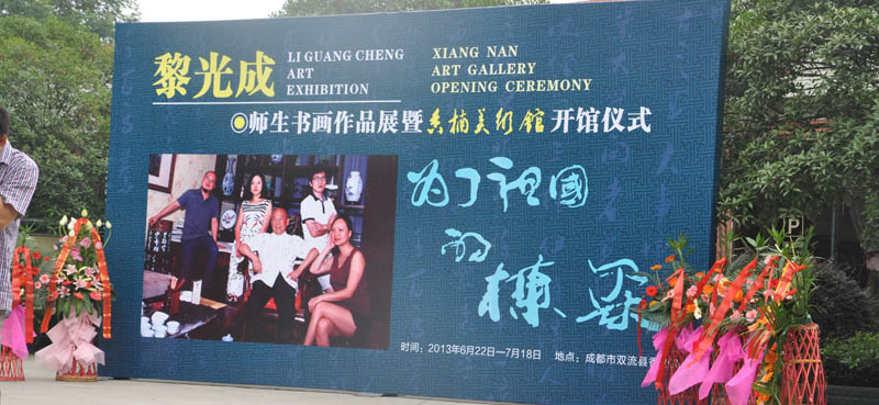 6月22日,“为了祖国的栋梁”黎光成师生书画作品展暨香楠美术馆开馆仪式双流香楠美术馆隆重举行。省政协常务副主席晏永和,省扶贫基金会会长翁蔚祥,省政协港澳委主任张君高,四川大学常务副校长李虹,省政协书画研究院院长钱来忠,省文联副主席杨时川,县政协主席胡天成,县委常委、宣传部部长张国治,以及来自县内外的书画艺术、企业、教育、宗教、博物收藏等领域的嘉宾300余人出席开馆仪式,地产商人米瑞蓉和任志强前来为本次展览捧场。翁蔚祥、钱来忠共同为香楠美术馆揭牌。 黎光成从事书法艺术50年,以一笔天马行空、元气淋漓的行草确立了自己在书法艺术领域的独特风格。近年来,黎光成进入绘画领域,让笔墨丹青彼此激荡,为自己的艺术人生开启了崭新局面。 黎光成介绍,本次书画展展出了自己和四位学生共60幅书画作品,包含了书法、水墨、工笔、油画等不同的艺术种类。其中首次展出黎光成的国画作品30余件,这也是这位本土著名的跨界达人在从事五十年书法艺术后,进军绘画领域的亮相之作。从6月22日至7月18日对外免费开放。 6月22日,正是“中国儿童慈善活动日”,为展现扶危济困的中华民族传统美德,黎光成师生和邓奂彰艺术研究会会长、香楠美术馆馆长邓爱平还向省扶贫基金会栋梁工程分会捐赠现金10万元,用于帮助今年“4·20”雅安芦山地震中受灾的青少年学生。