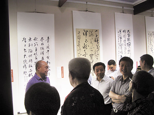 四川省政协书画研究院专职副院长兼秘书长洪厚甜在展厅内给嘉宾交流
