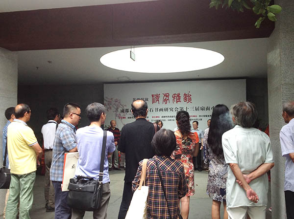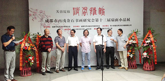 成都市文学艺术界联合会主办,成都市丙戌金石书画研究会承办,四川福宝斋文化传播有限公司协办的“丙戌书画研究会第十三届扇面小品展”今日在浣花公园文艺之家艺术厅开幕,成都市文联党组书记汪邦军、市文联党组成员、秘书长张顺生、办公室主任唐学深及有关艺术界人士参加开幕。