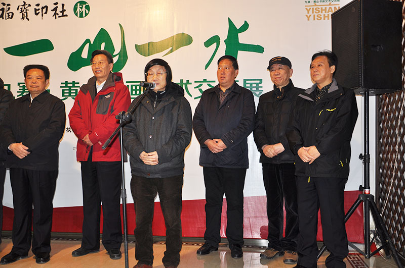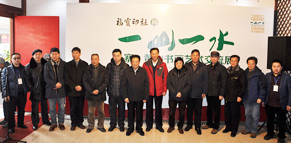 2015年2月5日,“福宝印社”杯“ 一山一水”九寨黄山艺术交流展在成都怀古堂美术馆隆重开幕。 参加此次开幕式的嘉宾有: 四川省文联党组书记 蒋东生先生 四川省美协主席 阿鸽女士 四川省美协常务副主席兼秘书长、四川省美术馆馆长 梁时民先生 四川省美协副主席 武海成先生 四川省书协副主席兼秘书长 戴跃先生 四川省书协副主席、四川省文化馆馆长助理 林峤先生 四川省书协副主席 钟显金先生 四川九寨沟管理局原局长、阿坝州政协副主席 章小平先生 黄山管理局副书记 范清棠先生 黄山管委会党委委员、政治处主任 程光华先生 黄山管委会党委委员、规划土地局局长 刘一举先生 四川天骄大熊猫画院院长、四川九寨画院院长 童昌信先生 黄山画院秘书长 关德军先生 四川省文史馆文史处处长 陈沫吴先生 四川省文史馆文史处副处长 伍文先生 巴蜀画派促进会秘书长 李杰先生 四川省收藏家协会副秘书长 田伟先生