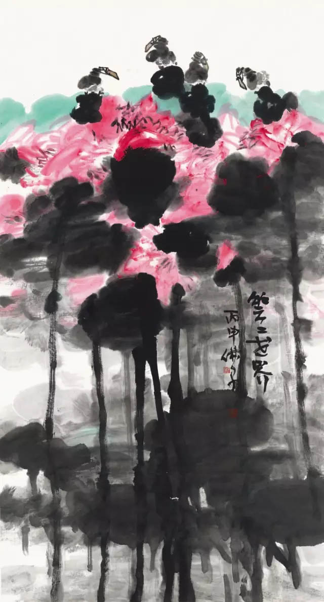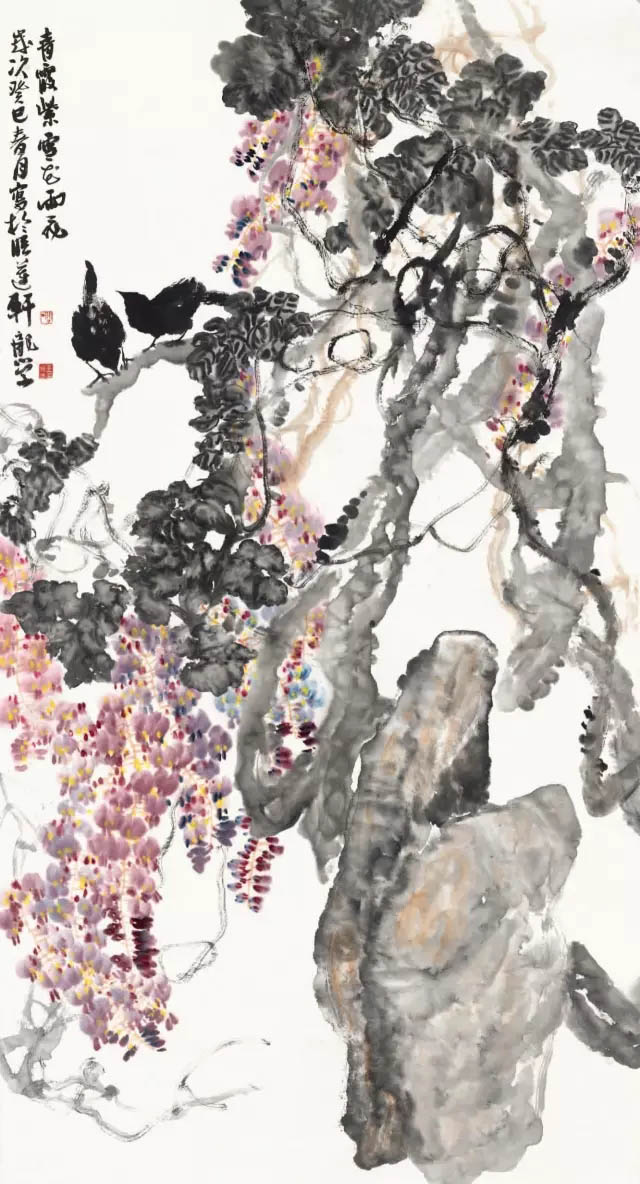 王龙学 青霞紫雪花雨飞 176cm×95cm