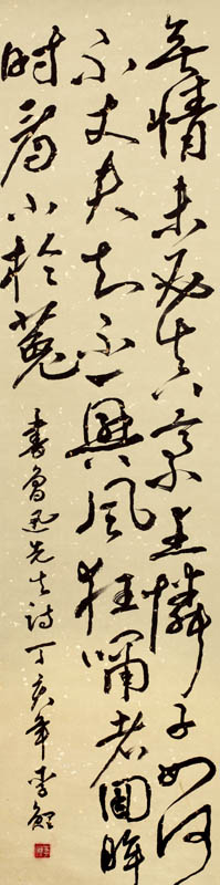 款识:书鲁迅先生诗,丁亥年李鲤。