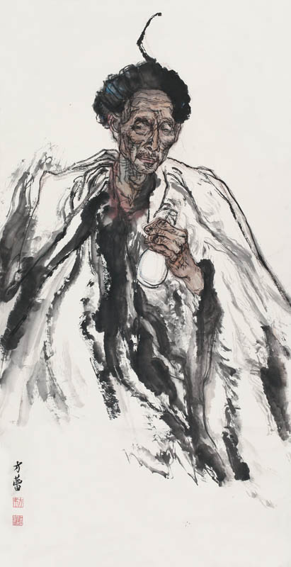 名称:《方蕾书画集》持酒瓶的苗人(1999年)