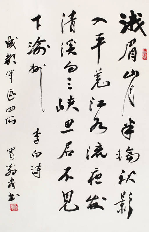 款识:李白诗,成都军区四所。蜀翁客书。