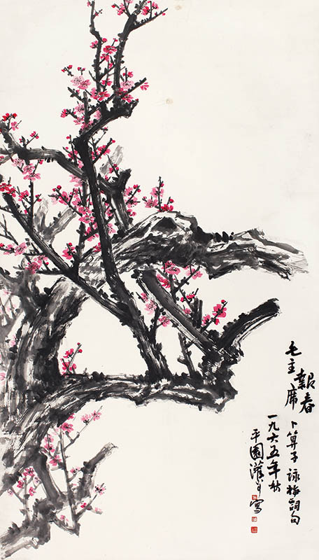 款识:报春。毛主席《卜算子·咏梅》词句,一九六五年秋,平园灌父写。