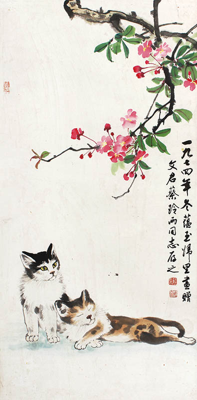 款识:一九七四年冬蕴玉归里,画赠文君、蔡玲两同志存之。