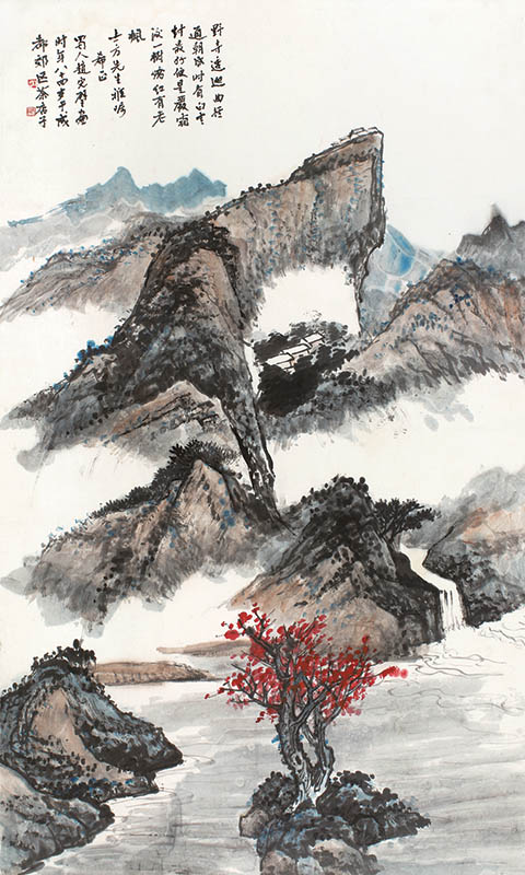 款识:野寺逶迤曲径通,朝昏时有白云封。最好便是严霜后,一树娇红有老枫。士方先生雅嘱希正,蜀人赵完璧画时年八十四岁于成都郊区茶店子。