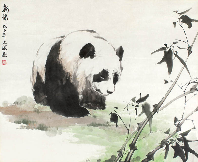 款识:新绿。戊子年志龙画。