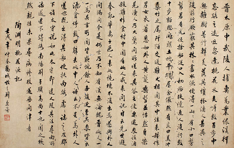 款识:陶渊明桃花源记壬戊年仲春鹃城牧之刘秉廉