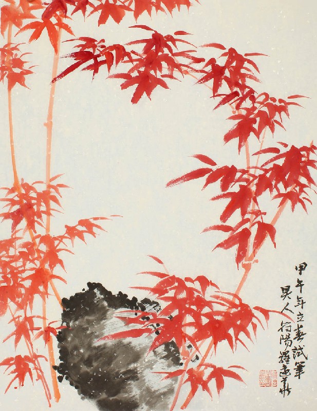 款识:甲午年立春试笔,昊人符阳罗远华。