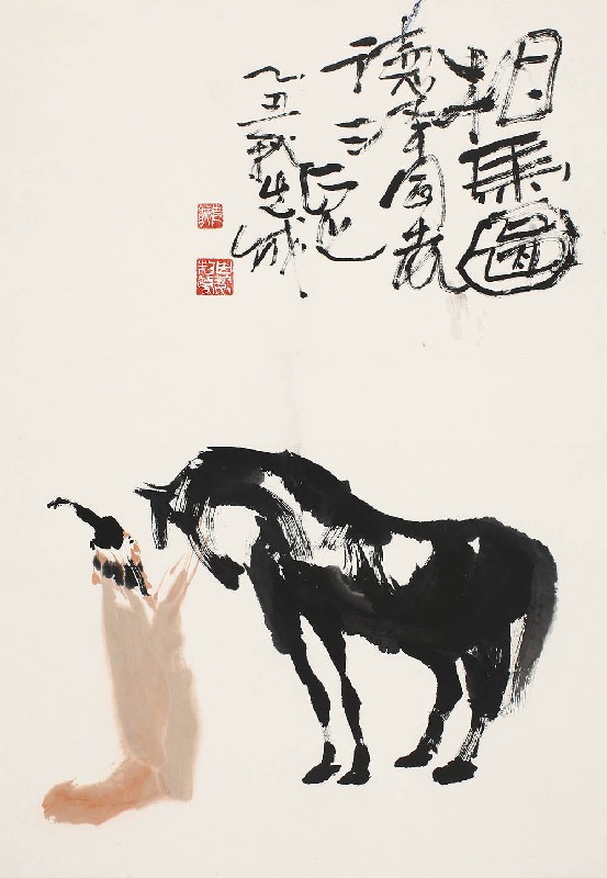 简介:彭先诚(b.1941):四川成都人。四川省诗书画院国家一级美术师,中国美术家协会会员,四川美术家协会理事。擅长没骨点染破墨法,善画鞍马人物。作画重于直觉,注重偶然的水墨关系,其作品笔精墨妙,格调清新,风格独异。