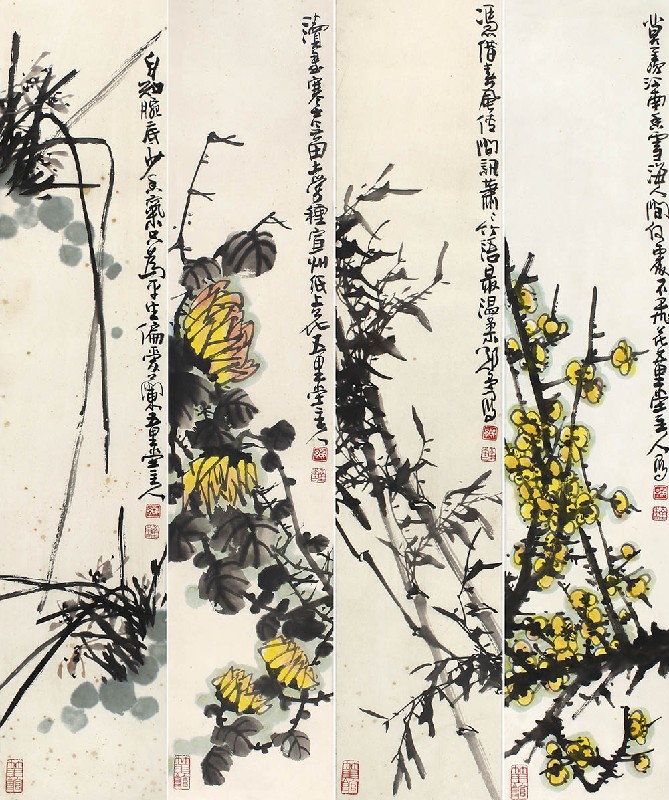 名称:花卉四条屏