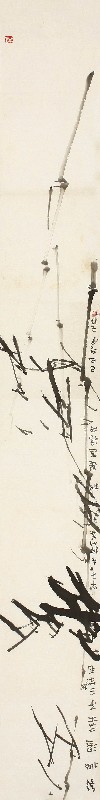 款识:几撇湿叶子,三竿(根)毛竿子。去掉竹叶子,就是这样子。己巳冬月,云泉。