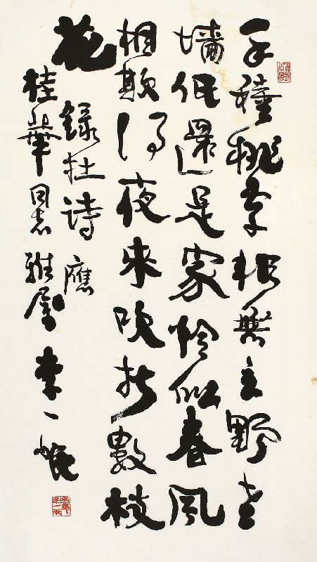 备注:手种桃李非无主,野老墙低还是家。恰似春风相欺得,夜来吹折数枝花。