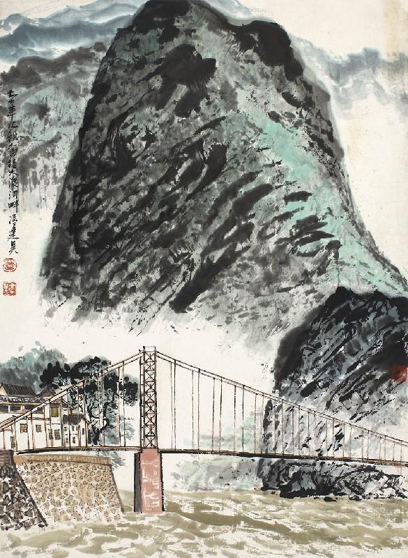 款识:七七年九秋写于大渡河畔,冯建吴。