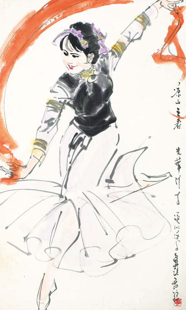 款识:凉山之春。光华请写,道鸿速写彝族舞蹈。