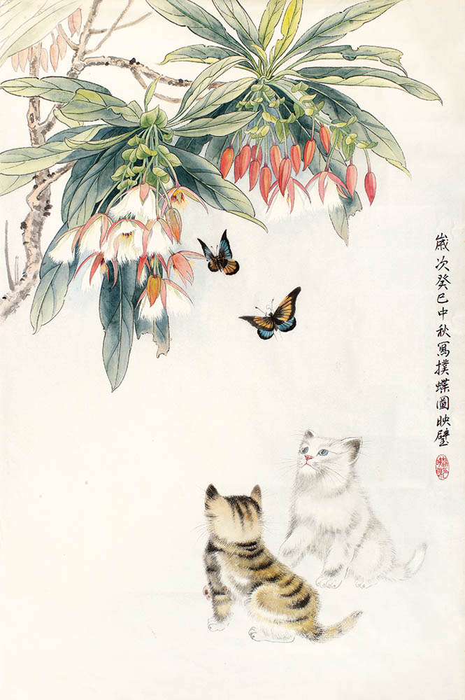 款识:岁次癸巳中秋写扑蝶图,映璧。