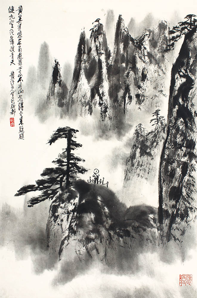 款识:黄山奇秀冠东南,游罢黄山不看山。安得老来腰腿健,九登绝峰揽青天。黄纯尧写于成都。