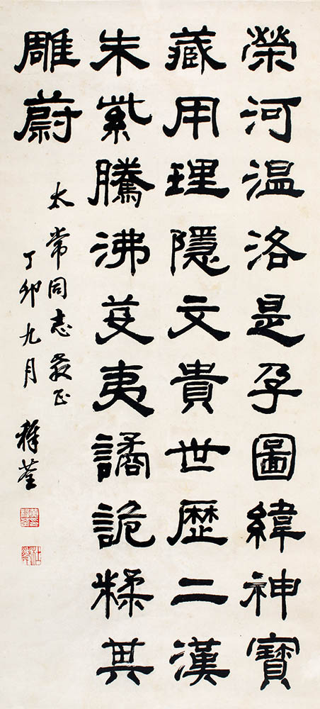款识:太常同志教正,丁卯九月,稚荃。