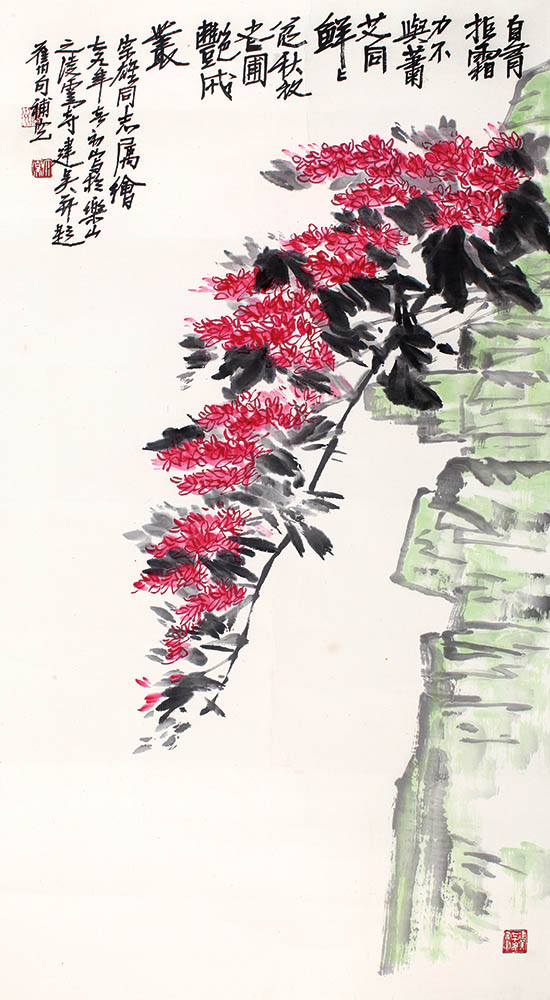 款识:自有拒霜力,不与萧艾同。鲜鲜忿秋放,老圃艳成丛。宗雄同志嘱绘,七九年春初写于乐山之凌云寺,建吴并题旧句补空。