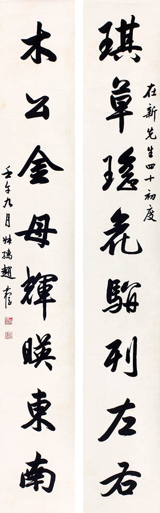款识:在新先生四十初度,壬午九月,叔孺赵时棡。