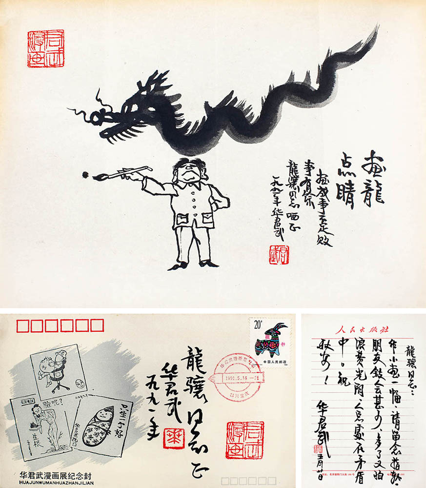 款识:龙骧同志正,华君武,一九九一年。画龙点睛。画成事不足败事有余,龙骧同志哂正,一九九一年华君武。