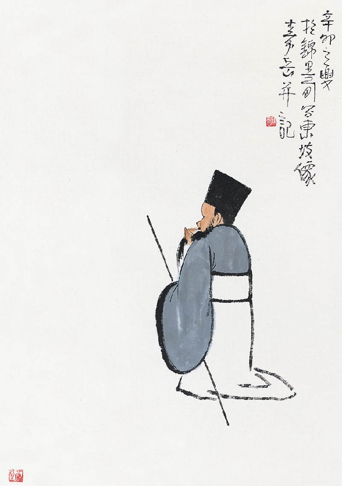 款识:辛卯之夏于锦里西写东坡像寿岳并记
