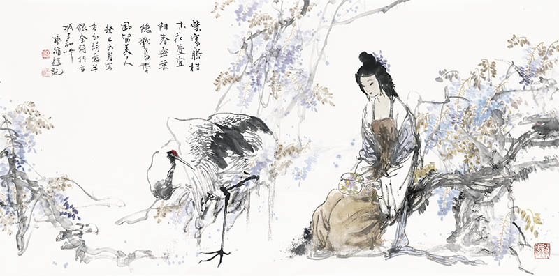 款识:癸巳大暑写李白诗意并録全诗于古城嘉州 杨循题记