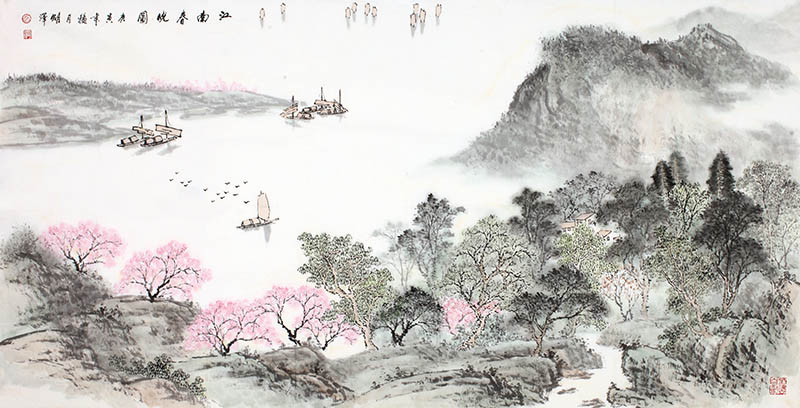 款识:江南春晓图庚寅年秋月 明泽