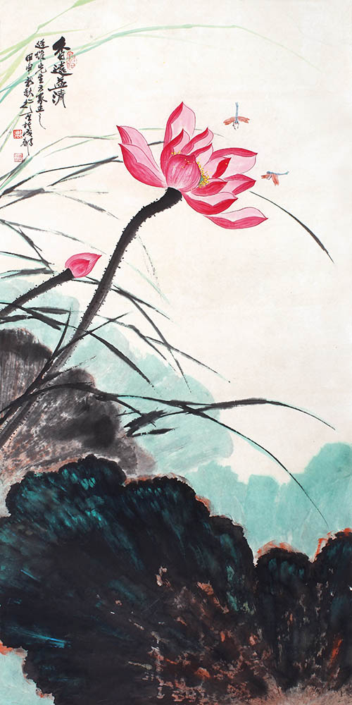 款识:香远益清。廷维先生方家正之,甲申新秋行百于成都。