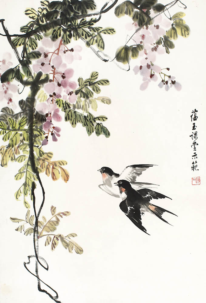 简介:赵蕴玉(1916-2003):原名文蔚,后改名赵石,字蕴玉,四川阆中人。1945年入大风堂,师从张大千,艺事大进。曾在博物馆研究古代字画,参加复制的工作,摹写之作,几可乱真。他的绘画继承了我国优秀的传统,举凡人物、花鸟、山水均为所长,工笔重彩、写意、白描各类的表达技法,均随手拈来,无不自然成章。他的书法也沉稳雅秀,兼长各家,五礼具备,尤擅行草。为“蜀中四老”之一,巴蜀绘画史上之集大成者。