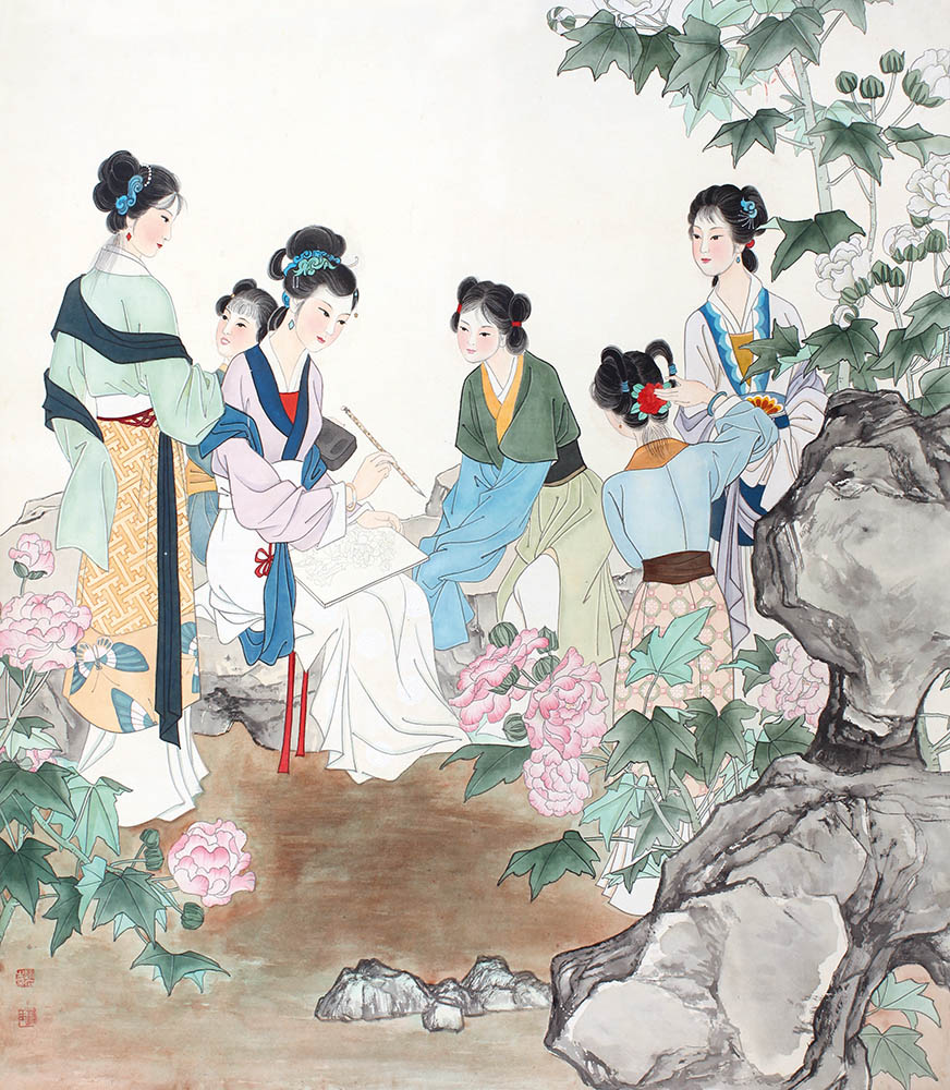 简介:赵蕴玉(1916-2003):原名文蔚,后改名赵石,字蕴玉,四川阆中人。1945年入大风堂,师从张大千,艺事大进。曾在博物馆研究古代字画,参加复制的工作,摹写之作,几可乱真。他的绘画继承了我国优秀的传统,举凡人物、花鸟、山水均为所长,工笔重彩、写意、白描各类的表达技法,均随手拈来,无不自然成章。他的书法也沉稳雅秀,兼长各家,五礼具备,尤擅行草。为“蜀中四老”之一,巴蜀绘画史上之集大成者。