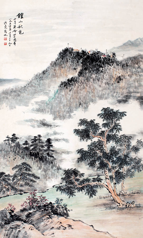 款识:钟山秋色。十月革命四十周年,一九五七年十月二十九日,纯尧写祝。