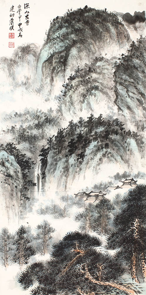 款识:深山古寺白云中。甲戌春建初萧朴。