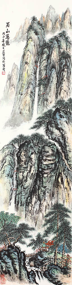 款识:蜀山葱茏。丙子年秋日石甫写于蜀都。