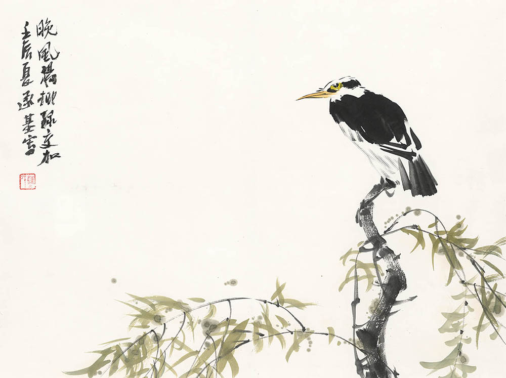 款识:晚风杨柳绿交加。壬辰夏承基写。