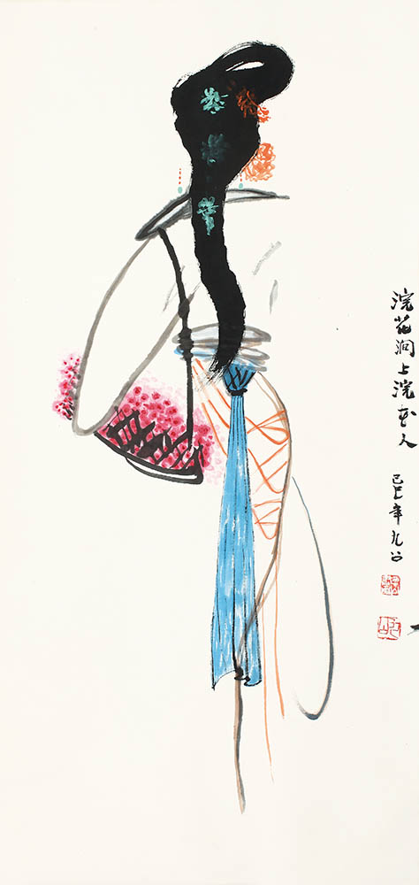 款识:浣花涧上浣花人。己巳年九公。