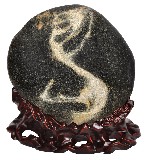 在奇石界,绝大多数石友的观念认为:奇石的价值在于状形类物、在于预示与再现,主张越具象越好。这个观念是从奇石的生成难度与稀有程度上来着眼的,的确,各地许许多多的图纹石种能够生成具象的图案巳非常难得,因此这个观念自然也就得到较为广泛的认同。
