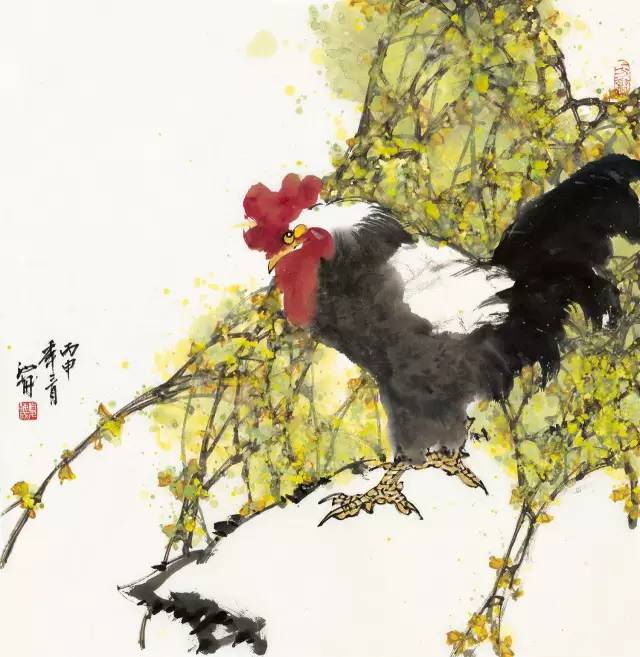 罗喜泽 《双喜枝头》中国画 70cm×47cm