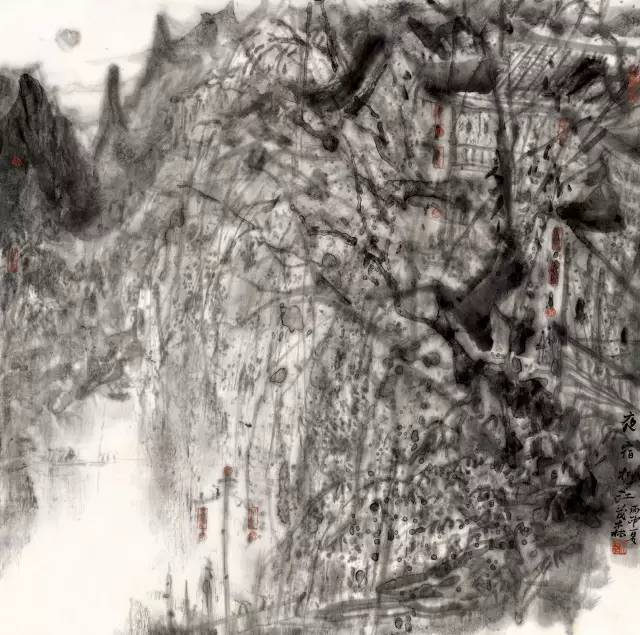 茂森 《夜宿柳江》中国画 70cm×70cm