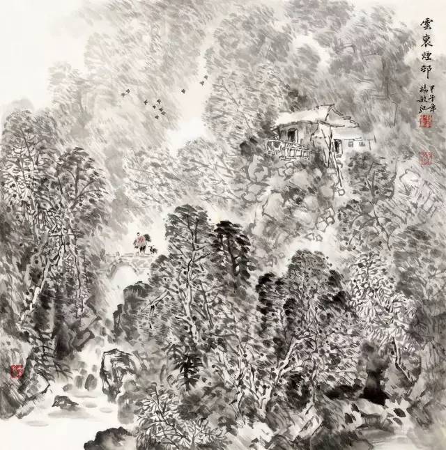 杨 敏 《云里烟邨》中国画 69cm×69cm