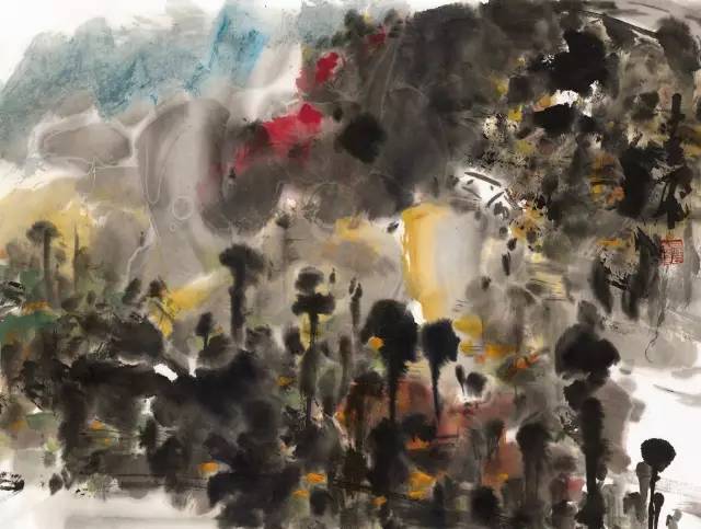 尹嘉伟 《坡头锦绣丛》中国画 48cm×46cm
