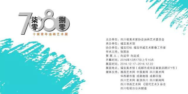 他们是出生于七十、八十年代的艺术家群体,刚好经历了改革开放,国民经济由计划经济转向市场经济后所带来的巨大变化。同经历过“85思潮”那一批艺术家不同,他们没有极左年代的苦难生活,他们更关注自己。 以往70、80后的这一群人在艺术领域一直被打上“自由自我”、“卡通一代”、“新新人类”并带有些许青春期回想的小忧伤这样的标签,而“柒零·捌零”油画邀请展所选择的十位青年艺术家他们则重来不被定位,亦无需修饰;没有什么主义,也无流派,他们表露出的则是一种更加自我、真诚、人文式的绘画,时代的发展注定了他们不再激进、愤怒、暴力;亦不再迷茫、焦虑、忧伤,而是更加冷静、深邃、沉着的一代。 本次展览的主题“柒零·捌零”,不仅是为了时间上的表述,而且力图阐明一种艺术观。在艺术界,他们没有上一辈艺术家那样的激进和革命,也没有新新人类那样的新奇和前卫,而是在如今这个标新立异的艺术圈子中坚守和研究绘画最本真的形式语言。本次参展的画家,大多来自四川本土,又多经过美术院校严格的专业训练和个人的努力探索,有的在艺术界已经崭露头角,这些艺术家的作品风格虽不同,但风格各异的作品背后,却蕴含了某种共同的气质,清晰的自然和文化气息,高雅的艺术趣味和成熟的语言追求,个人情感流露和时代精神的体现,无不展现出这群人独有的艺术格调和理念。 油画从西方传入中国至今,已不全然是写实和抽象的简单划分,更多的是转向了心灵深处的探索,寻求更加个人化的语言表达,参加此次画展的艺术家其作品都特别注重在绘画表现上的艺术性,而非社会性或是简单的描绘自然,并且具有独特的油画语言,这种绘画语言即有来自西方的色彩体系,也有母体文化色彩的加入,画家通过对自然景象进行解构,在画布上重新组织、布局,最终才能创作出这些成熟、优秀的绘画作品。它或许代表了当代油画艺术的一种新的发展方向,向艺术本体回归的方向。 福宝美术馆以发掘和推动青年艺术家为己任,希望此次展览能够较完整的呈现出当下青年油画家在经历浮躁与喧哗,再走向平静与单纯的创作状态。 张国忠 2016.12