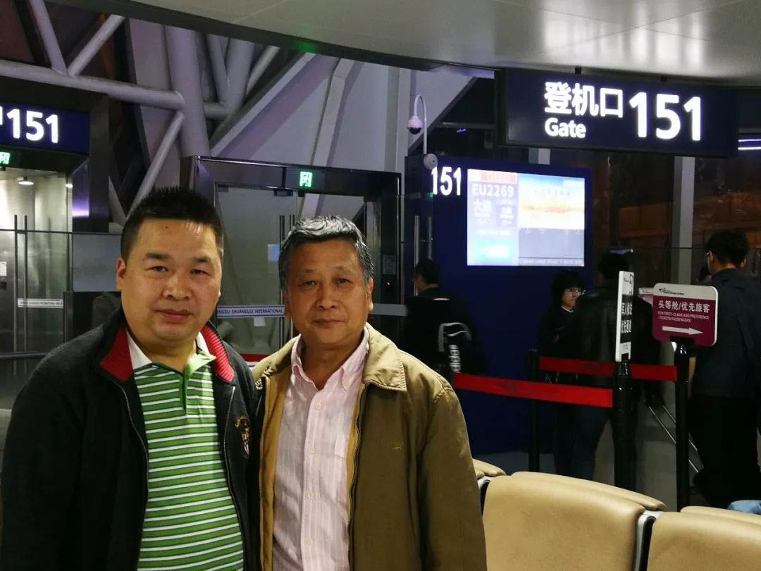 出发前,姚叶红老师与福宝印社总经理向运成在双流机场候机大厅合影