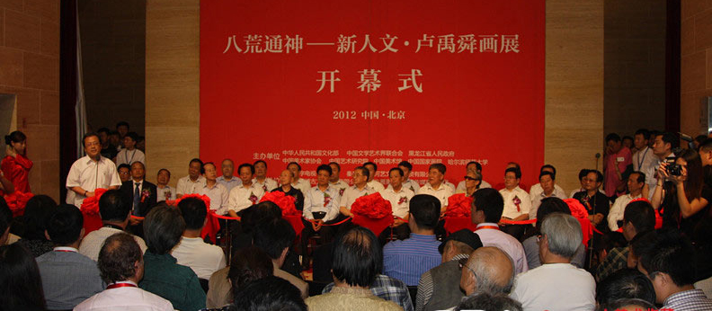 2012年9月9日上午,“八荒通神――新人文·卢禹舜”画展在中国美术馆开幕。出席开幕式的有文化部、中国文联、黑龙江省人民政府、中国美协、中国艺术研究院、中国美术馆、中国国家画院、哈尔滨师大等主办单位的领导与嘉宾,他们对卢禹舜的艺术成就与艺术追求给予了充分的肯定,并为开幕式剪彩。有500多位专家学者、艺术家与观众,以及来自英国、韩国、荷兰、日本等国的艺术家与评论家出席了画展开幕式。文化部艺术司副司长诸迪先生主持了开幕式。